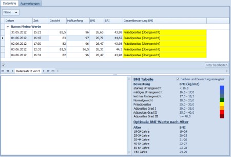 1-2-3 Gewicht verwaltet Ihre Gewichtsmessungen, berechnet und bewertet Ihren BMI. Ausserdem kann eine grafische Auswertung erstellt werden.
