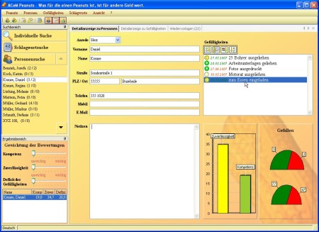 ACoM Peanuts: für professionelles Networking und maximalen Netzwerkerfolg. Das Programm sichert, dass alle Partner von der Netzwerkbeziehung profitieren. Denn nur so entstehen langfristig erfolgreiche Beziehungen. Lassen Sie sich mit ACoM Peanuts direkt anzeigen, wer Ihnen bei Problemen am besten helfen kann. Überprüfen Sie, dass alle Ihre Kontakte im Gleichgewicht sind. Lassen Sie sich an neue Aufgaben erinnern und behalten Sie den Überblick.