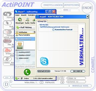 TAPI für Skype Client - ActiPOINTskypeD bietet vollständige TAPI Steuerung von Skype. Lösen Sie Internet Telefonate über ActiPOINT und/oder Ihrer Groupware (Lotus Notes, Outlook) aus. Hereinkommende Anrufe werden in ActiPOINT und/oder Ihrer Groupware archiviert. Sehen Sie wer Sie anruft. Initiieren Sie Konferenzen und wechseln Sie zwischen aktiven Anrufen. Binden Sie andere TAPI fähigen Anwendungen über ActiPOINTskypeD an Skype an.