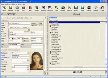 Das Adressverwaltungsporgramm für Windows. Die ansprechenden Bildschirmmasken und die äusserst einfache Bedienung erlauben ein sofortiges Arbeiten mit dem Programm ohne grosse SchulungAdressen können als Etiketten (alle Formate), Listen oder direkt auf Couvert gedruckt werden. Viele Schnittstellen zu anderen Programmen ermöglichen die einfache Übergabe z.B. direkt an Winword oder Excel mit einem Mausklick.