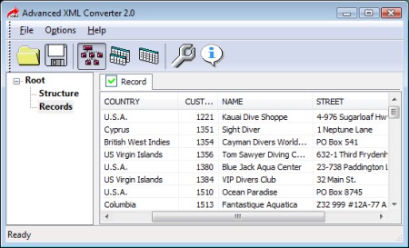 XML Converter bietet eine einfache, schnelle und hocheffiziente Möglichkeit zur Extraktion von Daten aus XML-Dateien und ihrer Speicherung in den verbreiteten Formaten HTML, DBF, CSV, Excel und SQL. Advanced XML Converter setzt kein besonderes Wissen um die XML-Datenstruktur voraus und vereinfacht die Konvertierung großer Mengen von XML-Daten bedeutend.Dateien und ihrer Speicherung in den verbreiteten Formaten HTML, DBF, CSV, Excel und SQL.