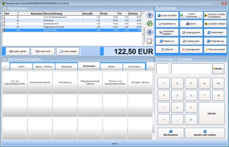 AFS-Friseur & Kosmetik ist eine spezielle Kassenlösung für den Bereich Friseur und Kosmetik. Enthalten ist u.a. ein Terminplaner, eine Kasse mit Touch-Bedienung, ein Editor für Kundenkarten, sowie Artikel-, Kunden-, Mitarbeiterer und Gutscheinverwaltung.