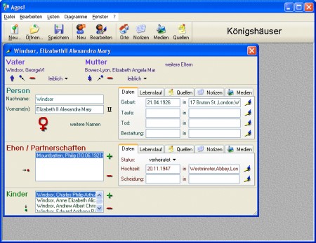 Ages! ist eine komfortable Software zur Verwaltung Ihres Familienstammbaumes. Die intuitive Benutzeroberfläche läßt Sie in kürzester Zeit Ihre Familiendaten erfassen. - beliebig viele Generationen - Notizen zu jeder Person - Verwaltung von Bild- und Tondokumenten - komplette Lebensläufe - flexible Datumseingabe - GEDCOM-kompatibel - auch für größte Bäume geeignet (>10000 Personen)