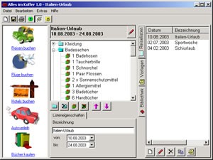 AiK ist eine umfassende Reiselistenverwaltung. Das Programm bietet die Möglichkeit Reiselisten als Vorlagen zu speichern und aus diesen wiederum neue Listen zu generieren. Die Anzahl der mitzunehmenden Reiseutensilien wird bei entsprechender Definition automatisch der Aufenthaltsdauer angepasst. Die Schriftarten und Farben für die Druckerausgabe können individuell eingestellt werden.