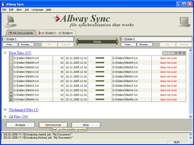 Allway Sync ist ein einfach zu bedienendes Programm mit dem der Benutzer Dateien zwischen zwei Rechnern abgleichen kann. Die Software überwacht dabei die letzten Veränderungen. Es sucht die neueste Version einer Datei in bestimmten Ordnern und gleicht sie mit dem Inhalt eines anderen Ordners ab.