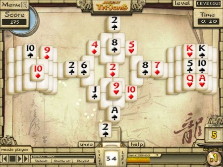 Das Solitairespiel Ancient Tri-Jong ist eine Mischung aus Tripeaks und Mahjong. Mit enthalten ist ein Media Player um eigene Musik während des Spiels zu hören. Es enthält 15 Quests und 150 Levels.