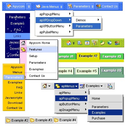 Die Sammlung der Web Menüs enthällt 20 verschiedene Kontrolle Typen, die alle möglichen „Navigations-Bedürfnisse“ der Webseiten einschliessen. Drop Down und Pull Down Menüs, animierte Menüs mit prachtvollen Visuellen Effekten, flache und 3d Tasten, XP-Stil Menüs und Tasten - all dies hilft Ihnen ein Cross-Browser Web Interface von jeden beliebigen Schwierigkeitsstufe und Aussehen zu entwickeln.