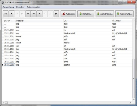 Die Arbeitsstunden können in dem Programm nach Mitarbeiter, Ort/Baustelle, Tätigkeit, Datum und Zeit erfasst werden. Jeder Mitarbeiter bekommt einen eigenen Zugang mit Benutzername und Passwort. Der Zugriff kann über ein Netzlaufwerk erfolgen. Der Mitarbeiter kann seine Stunden erfassen und die erfassten Stunden ansehen. Ein bearbeiten von bereits erfassten Stunden ist nur erlaubt, wenn dies der Administrator freigeschaltet hat.
