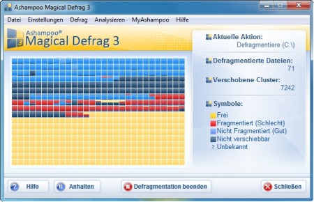 Nach und nach fragmentieren Festplatten aufgrund mangelnder Wartung so stark, dass ein deutlicher Performanceverlust spürbar wird. Hier bringt Ashampoo Magical Defrag Abhilfe. Einmal installiert läuft die Software unsichtbar im Hintergrund und sorgt für eine regelmäßige Wartung Ihrer Laufwerke, ohne dabei die Performance des Computers zu beeinträchtigen.
