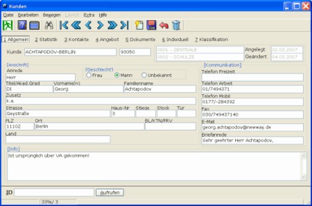Astice CRM ist die preiswerte Kundenverwaltung und Verkäufersteuerung für den Handel, konzipiert für den Einsatz in kleinen und mittelgrossen Betrieben und die perfekte Ergänzung zu einem bereits vorhandenen Rechnungswesen. Astice CRM wurde in Zusammenarbeit mit mittelständischen Betrieben entwickelt und ist damit eine Software, die den tatsächlichen Bedürfnissen der Praxis entspricht.