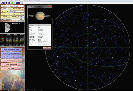 Asynx Planetarium ist ein einfach zu bedienendes Planetariumprogramm und Solarsystemsimulator. Es zeigt den Sternenhimmel von jedem Ort der Erde zwischen 1760 und 9999. Über 10000 Sterne, alle Planeten, die 88 Sternbilder, alle Messier Objekte und die Mondphase werden sehr schnell dargestellt. Eigene Orte können bequem eingegeben und ausgewählt werden. Perfekt für Schüler und Kinder die damit die Sternbilder kennenlernen.