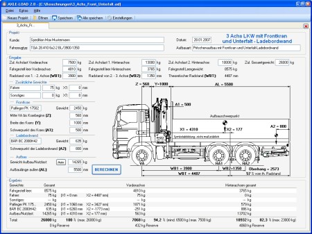 AXLE-LOAD ist eine Software zur Berechnung der Achslastverteilung und Abmessungen am LKW bereits im Entwurfsstadium. Es ist eine leicht zu bedienende Software mit intuitiv bedienbarer grafischer Programmoberfläche zur schnellen und flexiblen Konzeption des LKWs und des Fahrzeug-Aufbaus. Sind die technischen Daten des LKWs einmal eingegeben, können auf Knopfdruck verschiedenste Belastungs- und Beladesituationen \"durchgespielt\" werden.