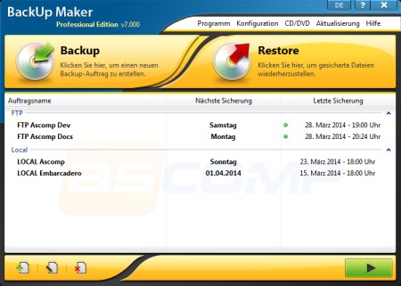 BackUp Maker sichert Ihre Daten vollautomatisch und überzeugt gleichzeitig durch eine intuitive Bedienung: Daten auswählen, auf Wunsch Automatisierung festlegen, Zielort wählen - und schon werden Ihre wertvollen Dokumente zeitgesteuert oder ereignisabhängig auf einer Festplatte, einem USB-Stick oder direkt auf CD/DVD in Sicherheit gebracht - platzsparend im Zip-Format.