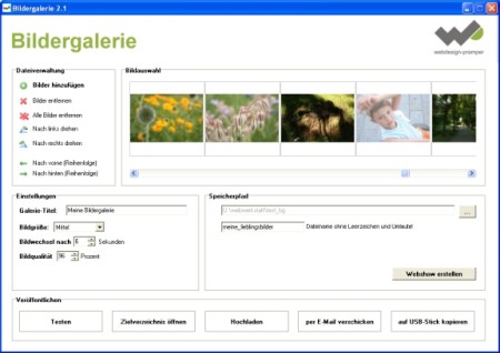 Mit unserer Software können Sie bequem Ihre besten Bilder auswählen, eine automatisch ablaufende Bildergalerie erzeugen und in Ihre bestehende Homepage integrieren, per E-Mail verschicken oder direkt auf einen USB-Stick kopieren.