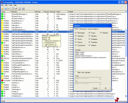 C#CommDog ist ein Software-Entwicklungstool, welches den Dokumentations-Status eines C#-Projektes analysiert und optimiert. Dabei werden automatisch alle dokumentationsrelevanten Sprachelemente in den Quellcodedateien des C#-Projektes auf ihre korrekte XML-Kommentierung überprüft. Fehlende oder fehlerhafte Kommentarteile werden korrigiert, vervollständigt und einheitlich formatiert im Quellcode erzeugt.