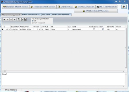 Software für DPD Paketshops, Paketzusteller, Transportdienstleister und Expressdienste: Automatisieren Sie die Verarbeitung der Paketinformationen vom Erhalt der Email durch DPD/GLS bis zum Rechnungsversand an Ihren Kunden. Besondere Unterstützung erhalten zur Zeit die Unternehmer, die für DPD und GLS tätig sind. Incl. Auftragsverwaltung, Kontaktdatenverwaltung, Statistiken, Analysen, Benutzer- und Mitarbeiterverwaltung. Netzwerkfähig.