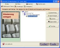 Erstellt automatisch startende CD-Oberflächen, wie Sie diese z.B. von diversen Zeitschriften CD’s kennen. Sie können beliebig viele Beiträge in einer Baumstruktur eingliedern und jeweils ein Bild und einen freien Text festlegen. Sie können mit jedem Eintrag auch eine Datei bzw. ein Programm verknüpfen, dass dann installiert bzw. kopiert werden kann. Erstellt echte Windows EXE-Dateien!