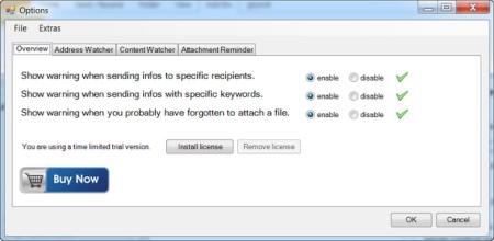 CheckSend verhindert typische Fehler beim versenden von eMails, Aufgaben,Terminen etc. Das Programm überprüft ausgehenden eMails, Besprechungsanfragen, Terminanfragen und Aufgaben auf potenziell vergessene Dateianhänge, unerwü?nschte Empf?änger und ungew?ünschte Schlü?sselwö?rter.