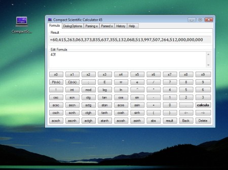 Kompakter wissenschaftlicher Rechner 45 für Wissenschaftler, Ingenieure, Lehrer und Kursteilnehmer. Berechnet mathematische Formeln jeder möglicher Länge und Kompliziertheit. Berechnungsgeschichte kann in Textdatei gespeichert werden oder gedruckt werden. Es gibt 10 Variablen oder Konstanten, die für das Speichern der häufig benutzten Zahlen vorhanden sind. Präzision von Berechnungen ist 45 Ziffern.