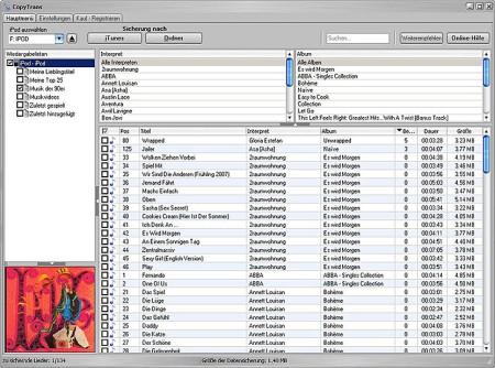 CopyPod ist das ultimative Sicherungs- & Wiederherstellungsprogramm für Ihren iPod. Es ermöglicht eine einfache Übertragung des gesamten Musikbestandes zwischen iPod und PC ohne Verluste von Wiedergabelisten und Bewertungen. Egal, ob Sie Ihren iPod zur Reparatur schicken, oder Ihre Musik nach einem Computer- oder Festplatten-Defekt erhalten , CopyPod macht es Ihnen einfach. - Komplette Sicherung Ihres iPods Wiedergabelisten und Bewertungen - Komplette Sicherung Ihres iPods Wiedergabelisten und Bewertungen