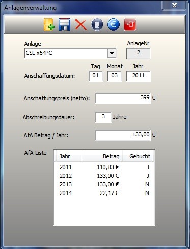 Einfach zu bedienende E/A-Buchhaltung für alle die keine Bilanz benötigen, wie Selbständige, Kleinunternehmer, Freiberufler. Feature im Überblick: USTVA per Elster ans Finanzamt senden.Elsternummer automatisch ermittlen,IBAN berechnen,AfA-Rechner, Afa-Liste, Tabellarische und grafische Auswertung, Umsatzsteuer für Monat/Quartal/Jahr ausgeben, Komprimiertes Jahresergebnis. Kosten- und Einnahmearten erweiter-/änderbar