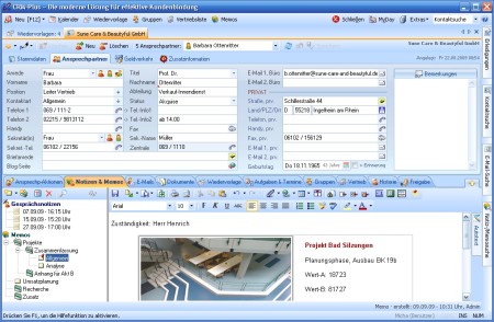 CRM-Plus 2014 ist eine professionelle Adress-, Kontakt- und Informationsmanagement-Software (Kundenbeziehungsmanagement), die speziell für die Anforderungen des Mittelstands entwickelt wurde. Mittelständische und kleine Unternehmen können ihre Datenbasis, ihr Kontaktmanagement optimal organisieren und damit Wettbewerbsvorteile sichern. CRM-Plus bündelt Information & Wissen, Organisation & Routine, Aufgaben & Kalender und vor allem das Wie & Wer.