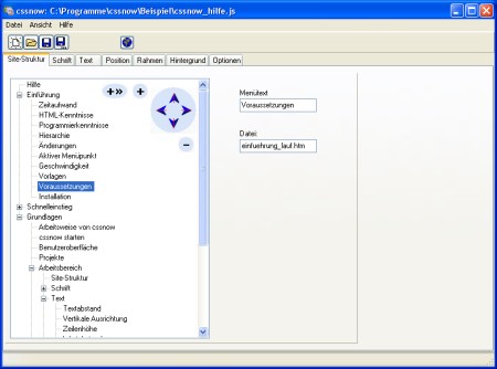 cssnow hilft Ihnen beim Erstellen umfangreicher Websites.Site-Struktur und die Navigation werden unabhängig vom Seiteninhalt gepflegt. Das Aussehen (Schrift, Farbe, Größe und Rahmen etc.) der Navigation kann beliebig angepasst werden. Die Inhalts-Dateien können mit jedem beliebigen HTML-Editor erstellt werden. cssnow arbeitet mit Javascript - Servererweiterungen sind nicht nötig. Eine Breadcrumb-Navigation macht die Website anwenderfreundlich.