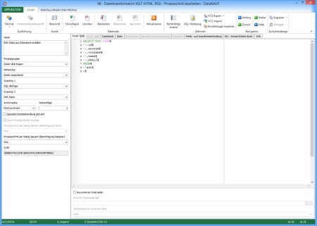 Mit DataNAUT werden Daten-Applikationen entwickelt und automatisiert. Daten aus allen gängigen Datenbank wie Oracle, MySql und ADS sowie Dateiformaten wie XLS, CSV und XML können verarbeitet und direkt importiert, exportiert, ausgetauscht und transformiert werden. DataNAUT unterstützt interpretierte Skriptsprachen wie SQL, Java Script, PowerShell, VBA, Ruby, Perl oder Python. Über eigene Workflows können alle Applikationen dynamisch ablaufen.