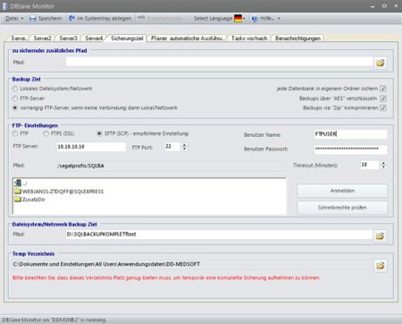 DBSave ist eine eine Lösung zur Sicherung und Wiederherstellung von MS SQL Server im laufenden Betrieb.Es werden alle Versionen bis 2016, einschliesslich MSDE- und Expresseditionen unterstützt.DBSave unterstützt Komplett, differentielle sowie Transaktions LOG Backups und kann Datenbanken auf anderen Servern wiederherstellen.Automatisch oder mit nur einem Mausklick kann ein kompletter Server gesichert werden.FTP,SFTP,FTPS Amazon S3- Unterstützung.