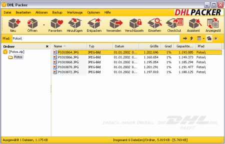 Mit dem DHL-Packer kann man Daten komprimieren und versenden. Egal ob Videos, Fotos, Dokumente oder Musik – mit dem kostenlosen DHL PACKER können Sie ganz einfach große Dateien komprimieren, verschicken, archivieren oder extrahieren.