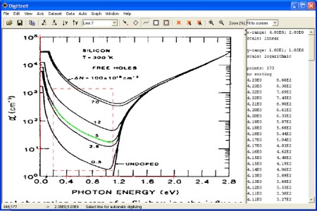 DigitizeIt Software ermöglicht es Datenwerte aus Graphen und Diagrammen zu extrahieren. Das kann mit 3 einfachen Schritten erledigt werden: 1) Import des Graphen aus einer Datei oder eines Screenshots 2) Definieren eines Koordinatensystems. 3) Digitalisieren der Daten mittels automatischer Hilfen, z.B. Linienerkennung.