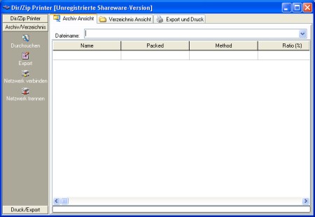 DIR/ZIP Printer ist ein Programm zum Ausdrucken von Archivinhalten (ZIP oder CAB) und Verzeichnissen. Zusätzlich bietet das Programm eine Importschnittstelle für den Import von Archiven aus Datensicherungsprogrammen.