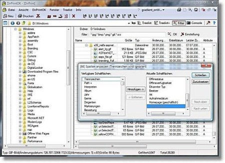 Mit DirPrint-OK können Verzeichnisinhalt und oder Verzeichnisstruktur ausgedruckt bzw. gespeichert werden. Man kennt es noch unter DOS, da war es so einfach, den Inhalt eines Ordners oder die Verzeichnisstruktur auszudrucken! So eine hilfreiche Funktion findet man unter Windows nicht. Obwohl es ab Windows 2000/XP über 30 Dateidetails zu den einzelnen Dateien gibt, wie z.B. den MP3 ID3-Tag Ver.1Genau hierfür gibt es DirPrintOK