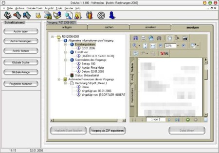 DokArc ist ein flexibles Dokumentenarchivsystem zur Verwaltung Ihrer Dokumente und Dateien. Die DokArc Archive können Sie individuell erstellen und an Ihre Anforderungen anpassen. DokArc unterstützt TWAIN kompatible Scanner zur Dokumentenscannung und Archivierung.