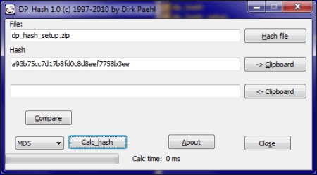 DP Hash 1.0 ist das Nachfolgeprogramm von DPASHA. Unterstützt werden zur Zeit folgende HASHES: adler32, crc16, crc24, crc32, crc64, EDonkey, MD2, MD4, MD5, SHA, SHA1, SHA256, SHA384, SHA512, Sapphire, Panama, Tiger, RipeMD128, RipeMD160, RipeMD256, RipeMD320, Haval128, Haval160, Haval192, Haval224, Haval256, Whirlpool, Whirlpool1, Square, Snefru128, Snefru256 und BMW224/BMW256 Blue Midnight Wish
