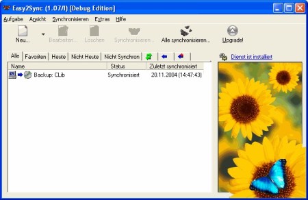 Einfach zu bedienendes Sync Programm um mehrere PCs abzugleichen. Das Programm erkennt automatisch gemachte Änderungen und synchronisiert die erforderlichen Dateien auf den Desktop / Laptop, damit Sie immer die aktuellen Dateien dabei haben. Des weiteren kann das Programm auch Backups anlegen und USB-Laufwerk als Brücke zwischen nicht-vernetzten PCs benutzen.