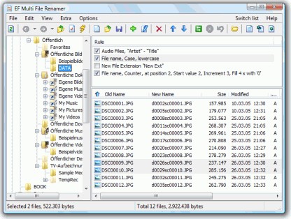 Ein vielseitiges Werkzeug zum komfortablen Umbenennen einer Vielzahl von Dateien und Ordnern in einem Arbeitsgang. Gegenüber vergleichbaren Programmen hebt sich EF Multi File Renamer vor allem durch sein Konzept zur übersichtlichen Definition von Umbenennungsregeln ab. Die integrierte Echtzeitvorschau zeigt dabei bei jeder Parameteränderung sofort an.