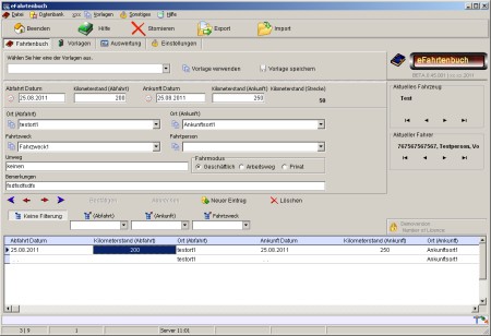 Kostenloses, digitales Fahrtenbuch. Schnelle Eingabe mittels Vorlagen und Hilfsfelder. Auswertung, Ausdruck, Ex- und Import. Drei Modi: Von einfacher Eingabe bis zu sicherem Modus (Finanzamt) mit umfangreichen Optionen. Verschiedene Fahrzeuge und Personen möglich.