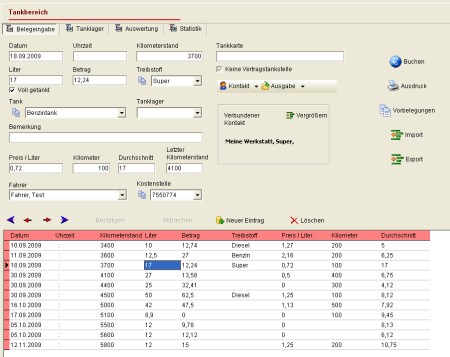 Professioneller Fahrzeugmanager für Firmen. Verwaltung der Stammangaben, Ausleihmodul. Verwaltung von Mandanten und Standorten. Ablage von Dokumenten in eigenem Dokumentsystem. Kontaktmanager mit Vererbung auf Module. Fahrtenbuch, Steuern, Versicherung (inkl. Unfall + Schäden), Reifen samt Historie und Verfolgung, Tanksystem mit Tanklager, Wartungsbereich samt Lagerhaltung. Termine + Kalender mit autom. Intervallterminen, Kassenbuch uvm