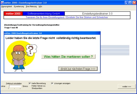Der Einstellungstest-Trainer hilft nicht nur Schulabgängern, die eigenen Fähigkeiten besser einzuschätzen, um sich auf die Anforderungen im angestrebten Ausbildungs- oder gar Traumberuf besser vorbereiten zu können. Die berufsspezifischen Tests beruhen dabei auf einem Frageverfahren, das von der Diplompsychologin Regina Scheidt und dem Computerlinguisten Dr. Michael Scheidt entwickelt wurde.