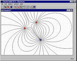 Mit dem Programm Elektrische Felder kann der Feldlinienverlauf von mehreren Ladungen in der Ebene simuliert werden. Mit der Maus oder Tastatur können beliebig viele Ladungen verschiedener Größe und Polarität auf der Fläche positioniert werden. Im Anschluss daran errechnet das Programm die elektrische Feldverteilung und stellt sie durch Feldlinien dar.