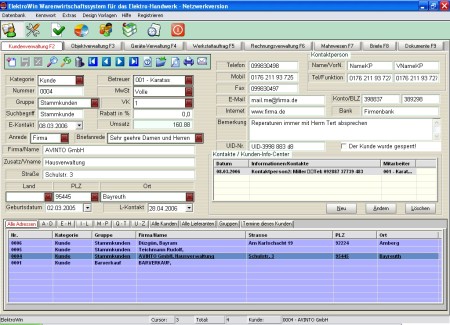 Hersteller-, Versicherung-, Interessenten-, Objekt-, Gerätverwaltung, Werkstattauftrag, Rechnungen, Angebote, Offene Posten, Kassenbuch, Mahnwesen, Statistiken, Auswertungen, Lager, ein flexibles Kommunikationssystem, das eine problemlose Integration und Datenaustauschmöglichkeit mit Fremd- und Parallelsystemen ermöglicht.