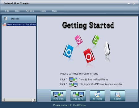 Jeder iPod-Besitzer könnte das Problem haben, die Inhalte auf dem iPod zurück auf den Computer zu übertragen. Aber es ist Ihnen lediglich über iTunes nicht erlaubt. Nun kann Emicsoft iPod Transfer das schwierige Problem lösen und Ihnen dabei helfen, Lieder, Video, Bilder, Wiedergabeliste von iPod auf PC, PC auf iPod oder iPod in iTunes mit einem Klick zu übertragen.