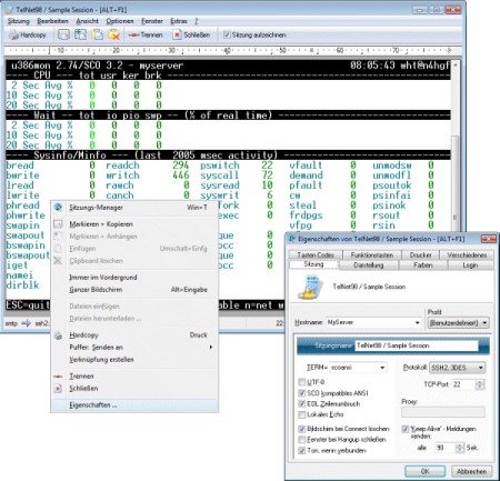 Erics TelNet98 ist der üppig ausgestattete und hoch flexible PC Telnet- und SSH-Client für lokale Netzwerke, Intra- und Internet! Dieses Windows-Sockets basierende Terminal ist ANSI und SCO-ANSI kompatibel und unterstützt Farbausgabe, eine Zeilendrucker-Emulation, automatischen Login sowie viele weitere Features.