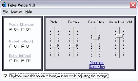 Mit Fake Voice können sie mit dem Computer die Stimme verändern. So kann man die Stimme von einen alten Mann bis zu einer jungen Frau klingen lassen. Auch Roboter-Stimmen sind möglich.