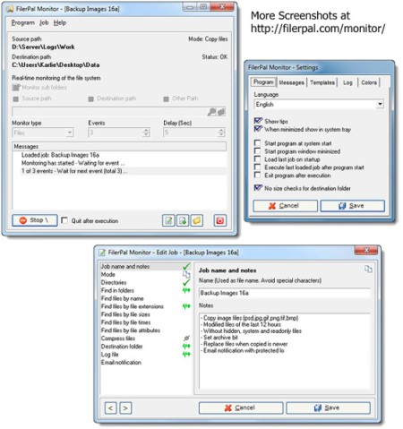 Auftragsbasierte Dateiüberwachungs-Software für Netzwerke und Desktop Computer. FilerPal Monitor ist das Werkzeug für die auftragsbasierte Handhabung von Dateien und Verzeichnissen bei Veränderungen des Dateisystems in Echtzeit. Backup, Kopieren, Verschieben, Löschen, Synchronisieren, Komprimieren, Dekomprimieren samt Verzeichnis-, Datei- und Echtzeitüberwachung, lokal oder in Netzwerken mit detailliert einstellbaren Ausführungsoptionen.