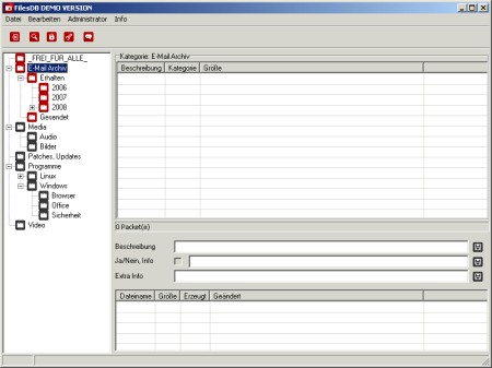 Machen Sie ein Ende mit dem Dateichaos auf Ihrer Festplatte. Verwalten und Archivieren Sie Dateien lokal oder im Netzwerk mit FilesDB. Eine einfache Bedienung und Administration sowie übersichtliche Oberfläche zeichnen FilesDB aus. Das Programm ist portable, besitzt eine schnelle Suchfunktion, Benutzerverwaltung, Update Prüfung und Duplikatssuche.