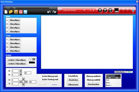 Mit Flash Webshop kann ein Onlineshop oder eine Website im Flashformat hergestellt und verwaltet werden. Durch zusammensetzen und ändern von Komponenten, stellt der Flash Webshop zahlreiche Möglichkeiten bereit, um einen Flash Onlineshop zu gestalten. Die Bestellungen können mit der beigefügten Datenbank verarbeitet werden, oder in eine andere Datenbank Importiert werden.