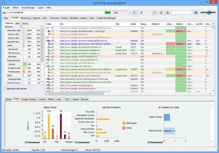 Forecheckist ist eine SEO Software, die Linkchecker, SEO Tool, Website Analyse und einen Crawler zur Suchmaschinenoptimierung vereint. Forecheck ist sehr schnell und kann auch sehr große Websites mit über 1 Mio URLs analysieren. Indexierbarkeit, Content-Analyse, Duplicate Content / Title / Description uvm. werden zur Laufzeit geprüft und in Reports zur Verfügung gestellt.