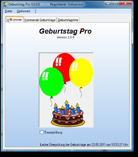 Geburtstage haben wir sicherlich schon alle einmal vergessen. Damit Ihnen dies nicht mehr passiert, dafür sorgt Geburtstag Pro. Sie werden auditiv und visuell an Geburtstage erinnert. Sie können Geburtstag Pro so konfigurieren, dass automatisch am Geburtstag einer Person, diese eine eMail mit Geburtstagsgrüßen erhält. Ganz, ohne Ihr Zutun.